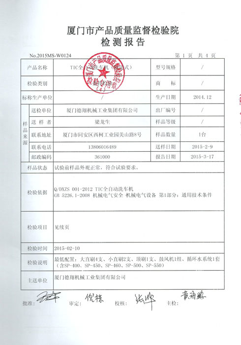 質量監督檢測報告